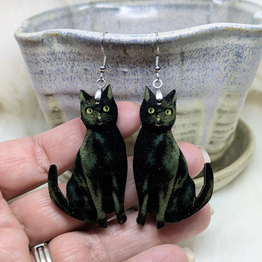 Black Cat Earrings Double Sided Vintage Halloween Earrings