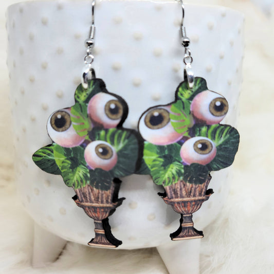 Eyeball Float Wood Earrings Single Sided