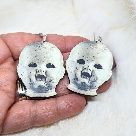 Creepy Chucky Girl Doll Wood Earrings Single Side