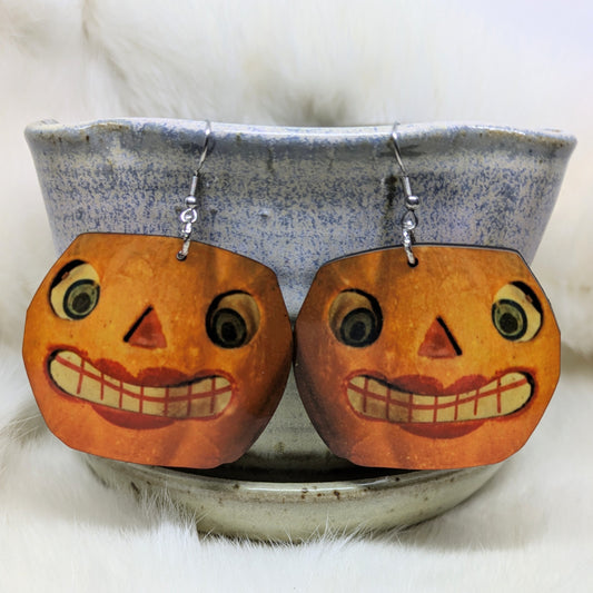 Creepy Pumpkin Earrings Double Sided Vintage Halloween Decoration