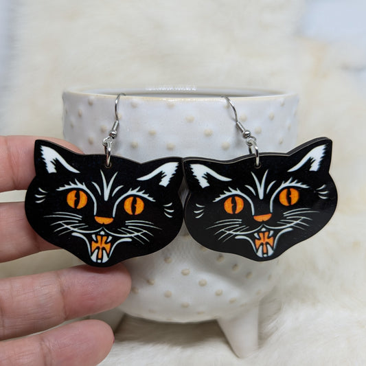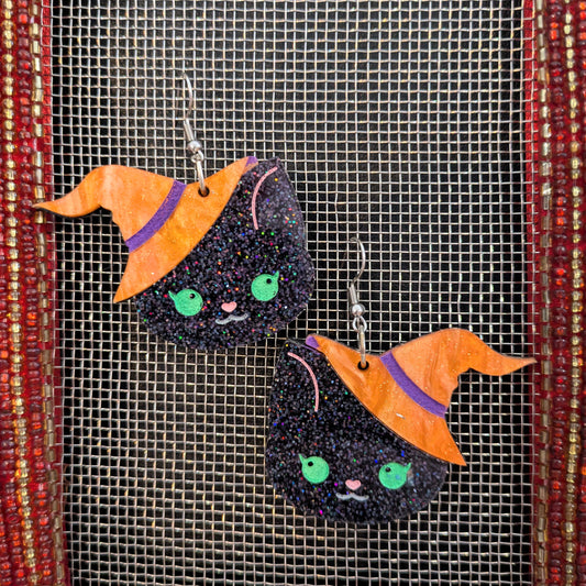 Cute Kitty Witch Halloween Earrings Acrylic Layered