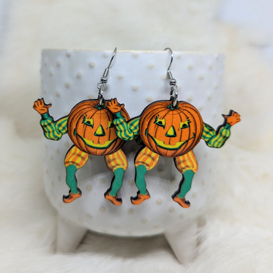 Dancing Pumpkin Earrings Double Sided