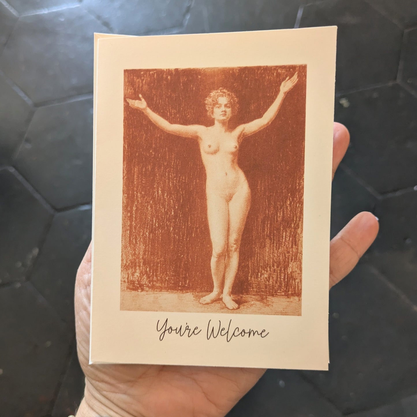 You're Welcome Greeting Card Naked Lady